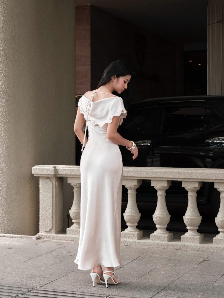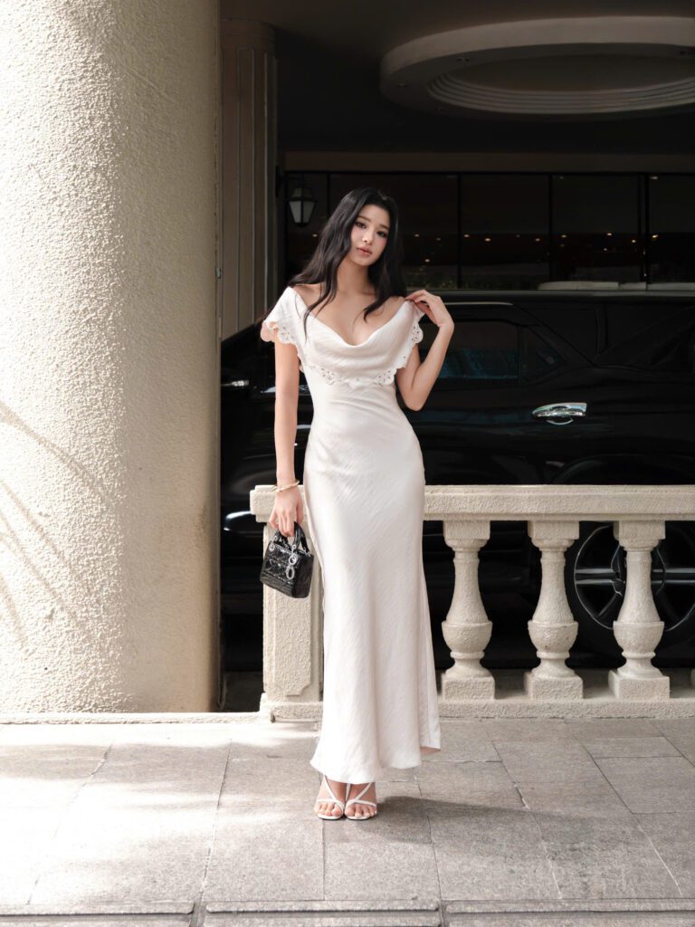 • Thêu hoa tinh tế viền quanh cổ áo • Thiết kế cổ áo trùm đầu tạo nên vẻ ngoài thanh lịch • Được lót đầy đủ để tạo sự thoải mái và cấu trúc thoải mái • Khóa kéo bên hông giúp dễ dàng mặc định • Những nếp gấp phức tạp chạy từ tẩy đến eo để tăng thêm chi tiết • Dây buộc có thể điều chỉnh ở phía sau để giữ dây đeo cố định chắc chắn • Chiều dài midi dài: khoảng 120cm từ vai đến gấu váy • Vải không co giãn • Thân áo vừa vặn với lớp vải mềm tạo cảm giác vừa phải tôn tạo Vải chính: Silk SanChi (sợi tơ tự nhiên, không khử keo) có bề mặt mờ hơi nước, ít bóng hơn truyền thống lụa, mang lại cảm giác thoáng khí và mềm mại với kết nối cấu hình thương mại, dịu dàng hơn. Niêm mạc: 80% polyester + 20% cotton Hướng dẫn chăm sóc: • Nhẹ nhàng rửa bằng hơi nước hoặc nhẹ nhàng nhẹ nhàng (tránh chà xát mạnh) • Tránh tiếp xúc trực tiếp với ánh nắng mặt trời • Không thể giặt hoặc sấy khô