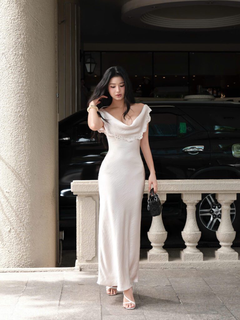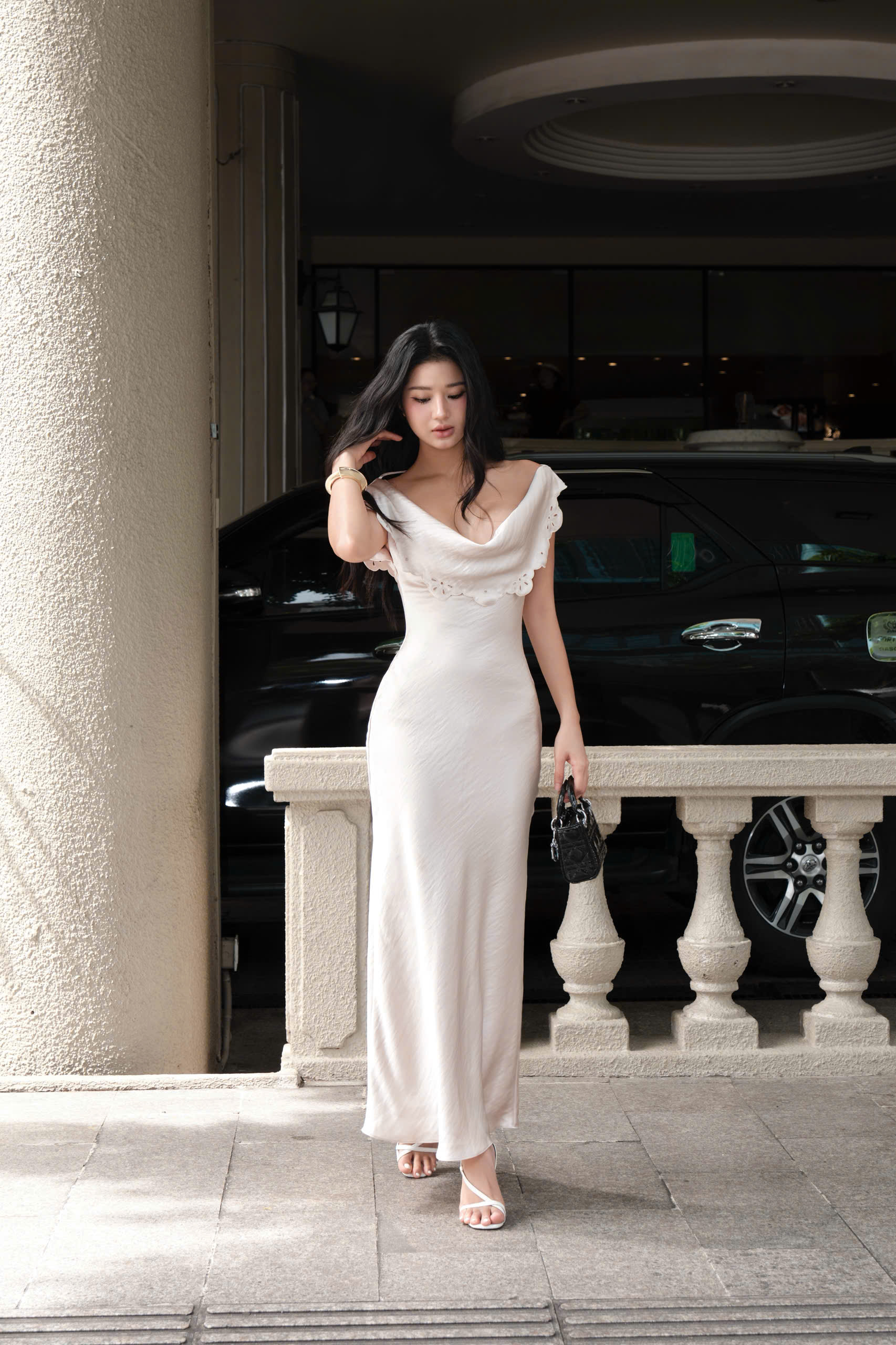Váy Aurelia là một chiếc váy midi thanh lịch được làm từ lụa SanChi, mang đến kết cấu tinh tế với lớp phủ bóng nhẹ nhàng. Được thiết kế hướng dẫn đến sự tinh tế và thoải mái, Chiếc váy này nổi bật với họa tiết thêu hoa tinh tế dọc theo đường viền cổ áo và cổ áo trùm đầu tổ ong, hoàn hảo cho cả những sự kiện trang trọng lẫn những lúc lãng phí mạn.