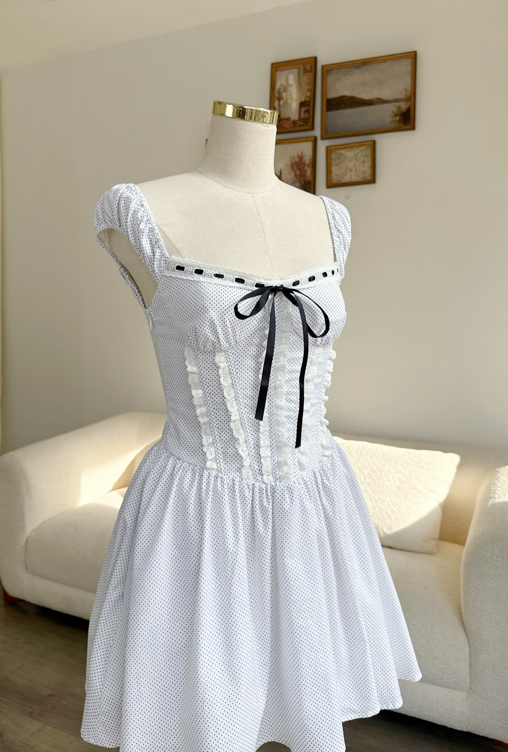 Fiona Dress – Ivory Polka Dot