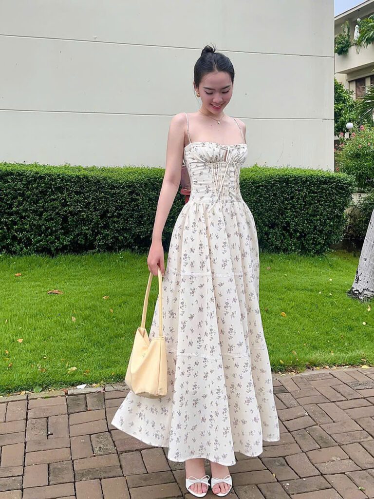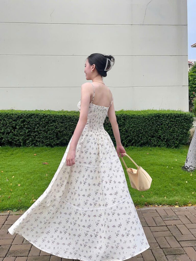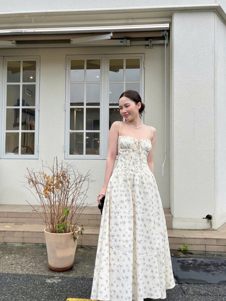 • Model is 156cm tall and weighs 45kg. Her measurements are 80 – 62 – 90 cm, wearing size S.